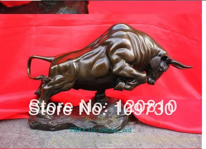 Review Large size Bronze coffee Wall Street Fierce Bull OX Figure Statue 14"Long"