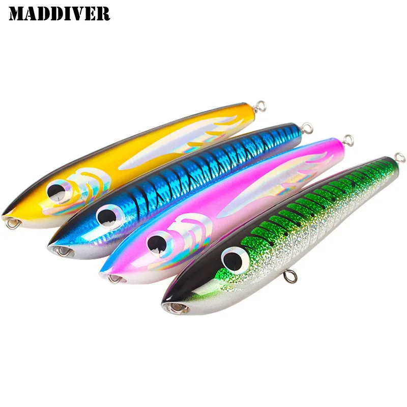 MADDIVER 120g 2 pcs Topwater Wooden Stickbait GT Surface Trolling Lure Saltwater Pencil Boat Fishin