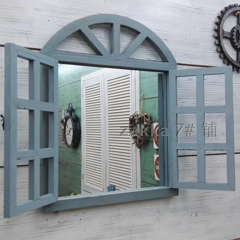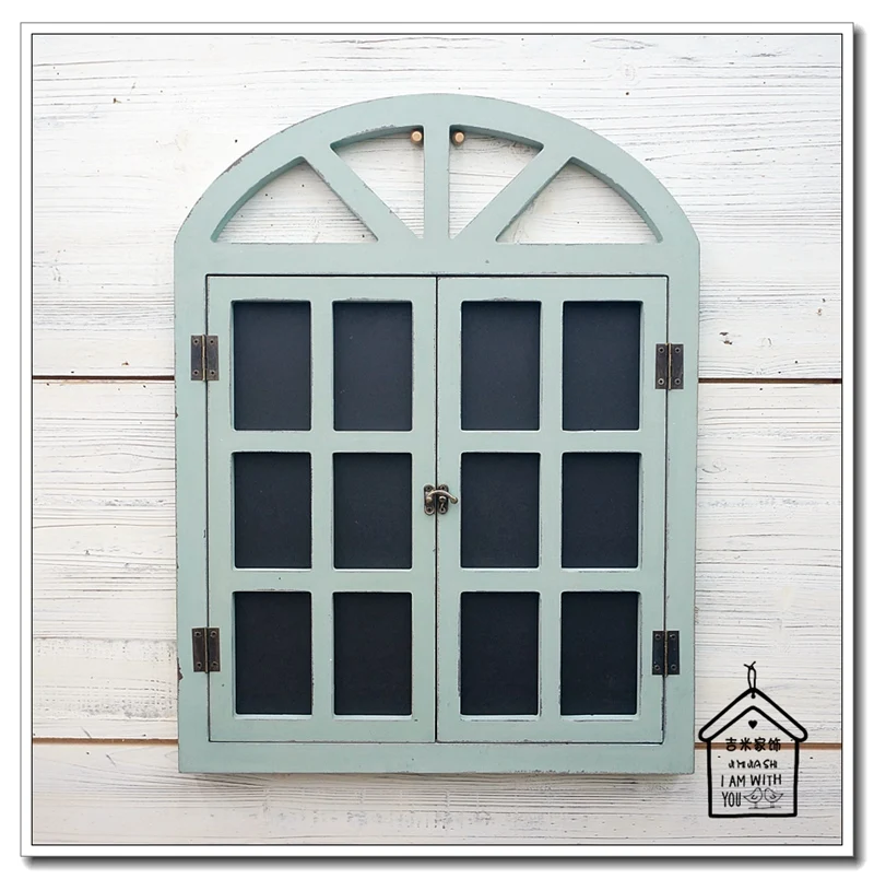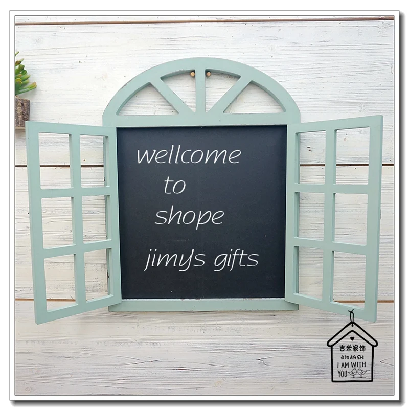 HOT Sale zakka grocery retro blue timber fake window Mural blackboard creative personality fashion shop wind