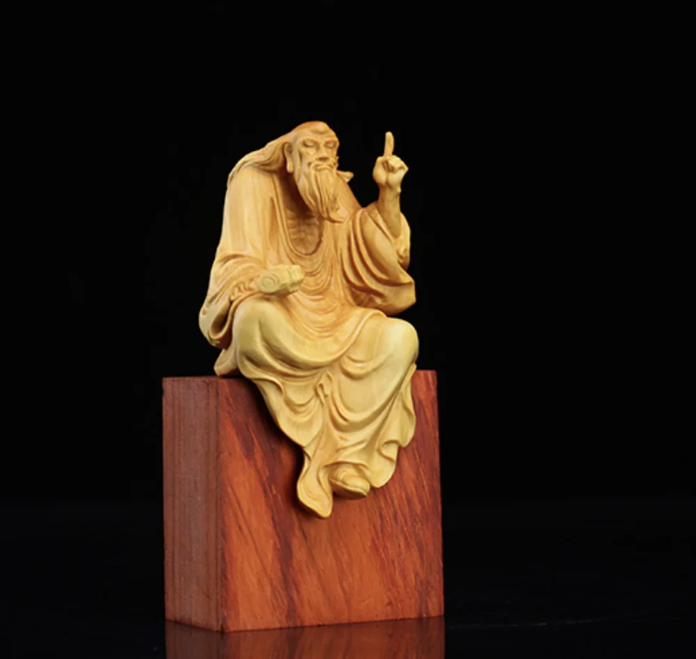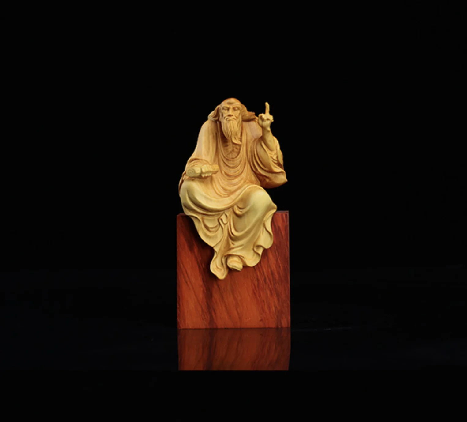 Best Seller Laozi miniature figurines Lobular wood statue wall decors ornaments home Zen collection art Preachi