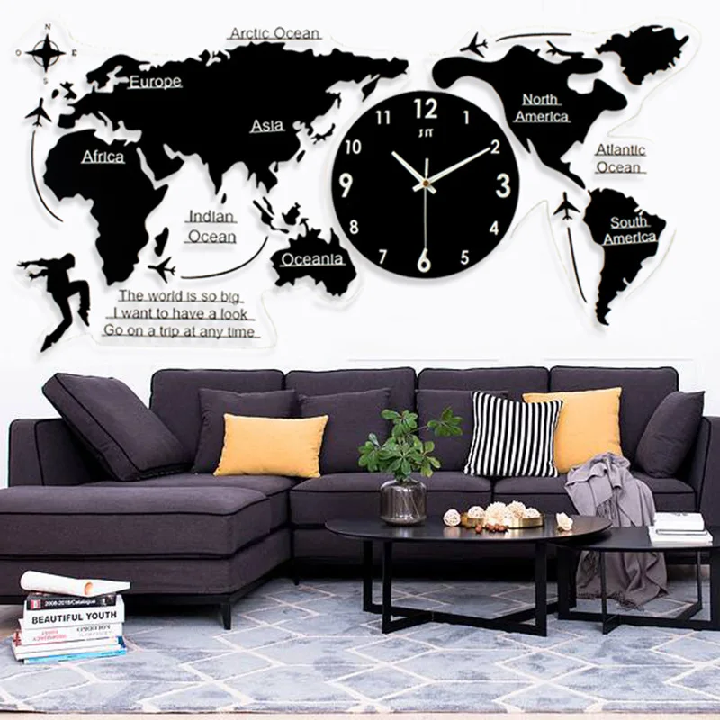Nordic Brief Acrylic Creative World Map Clocks for Living Room Wall Clocks Home Decor Modern Design