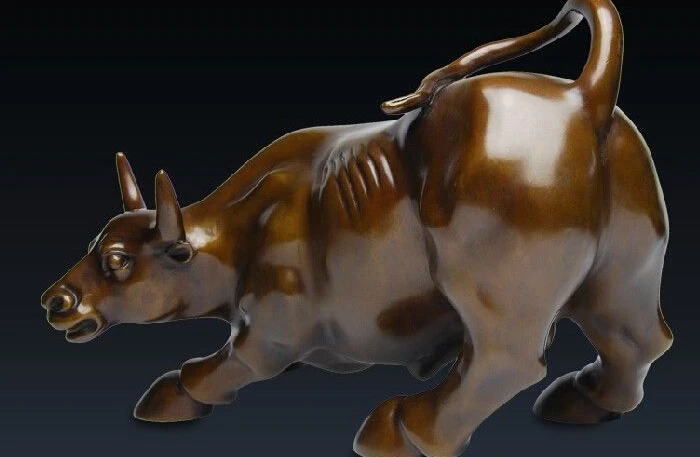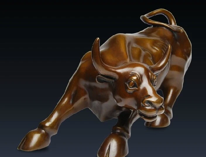 China Bronze Copper Art Sculpture Wall Street Fengshui Ox Bull Cattle Cow Statue