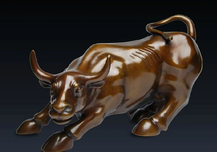 HOT SALE China Bronze Copper Art Sculpture Wall Street Fengshui Ox Bull Cattle Cow Statue