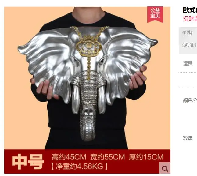 Simple European style stereo creative retro elephant head wall pendant living room wall shop bar ai