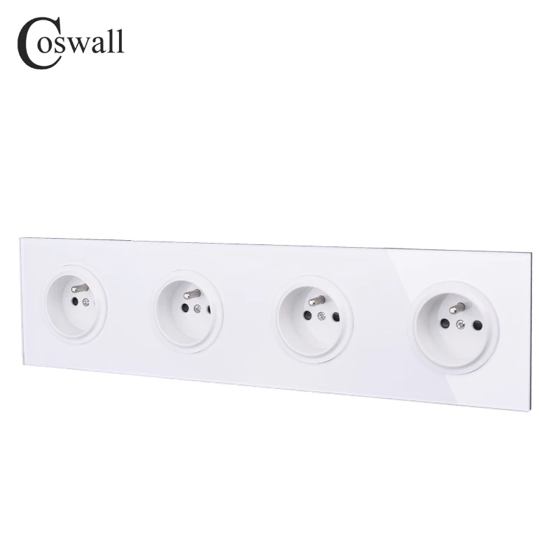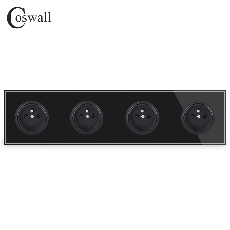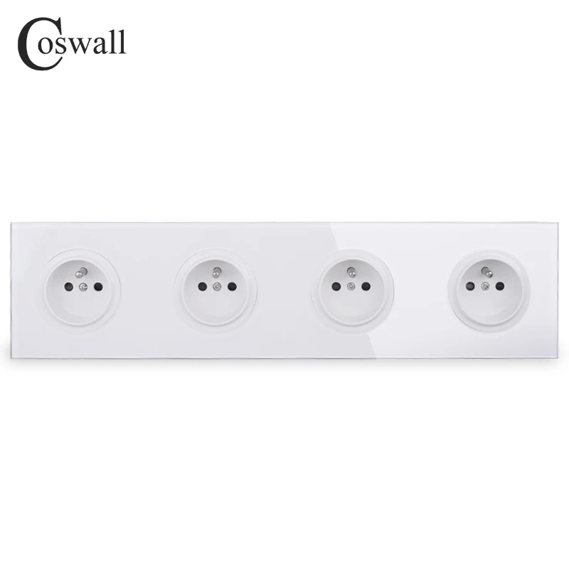 Best Coswall Crystal Tempered Pure Glass Panel 16A 4 Gang French Standard Wall Power Socket Grounded Wit