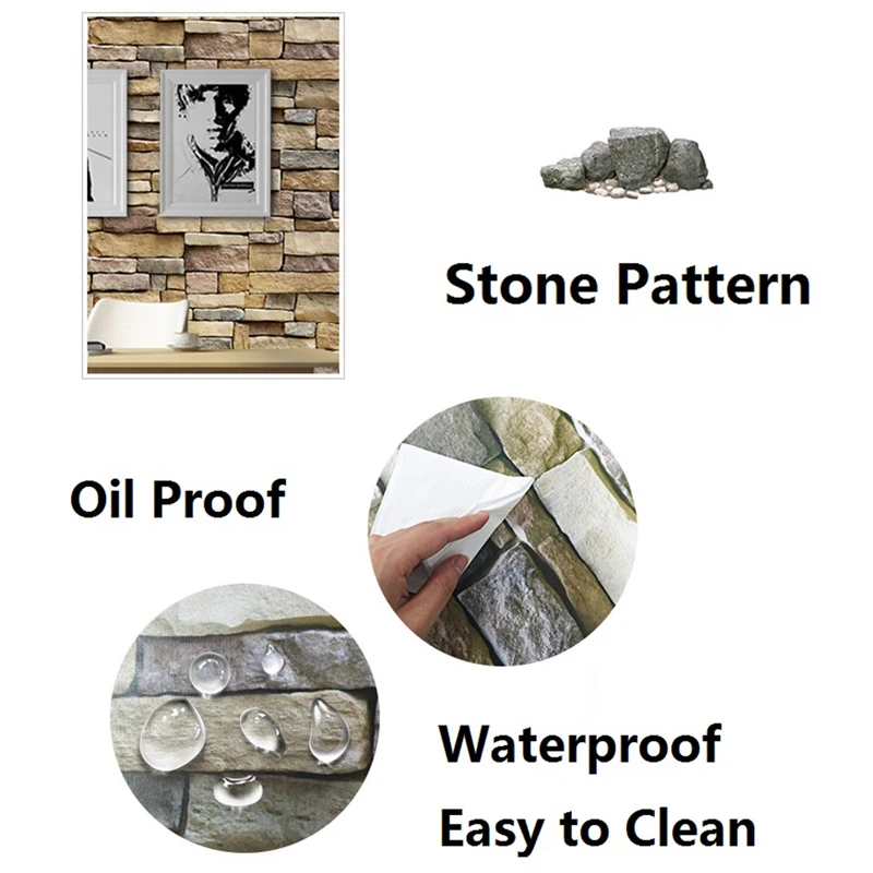 Self adhesive Wallpaper Vinyl Waterproof Wall Covering Stickers Kitchen Bedroom Living Room TV Back