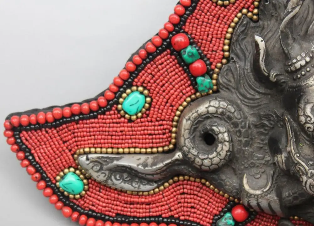 Review 20" Tibet Red coral Old Silver Garuda Bird Eagle Buddha Wall Hanging Statue